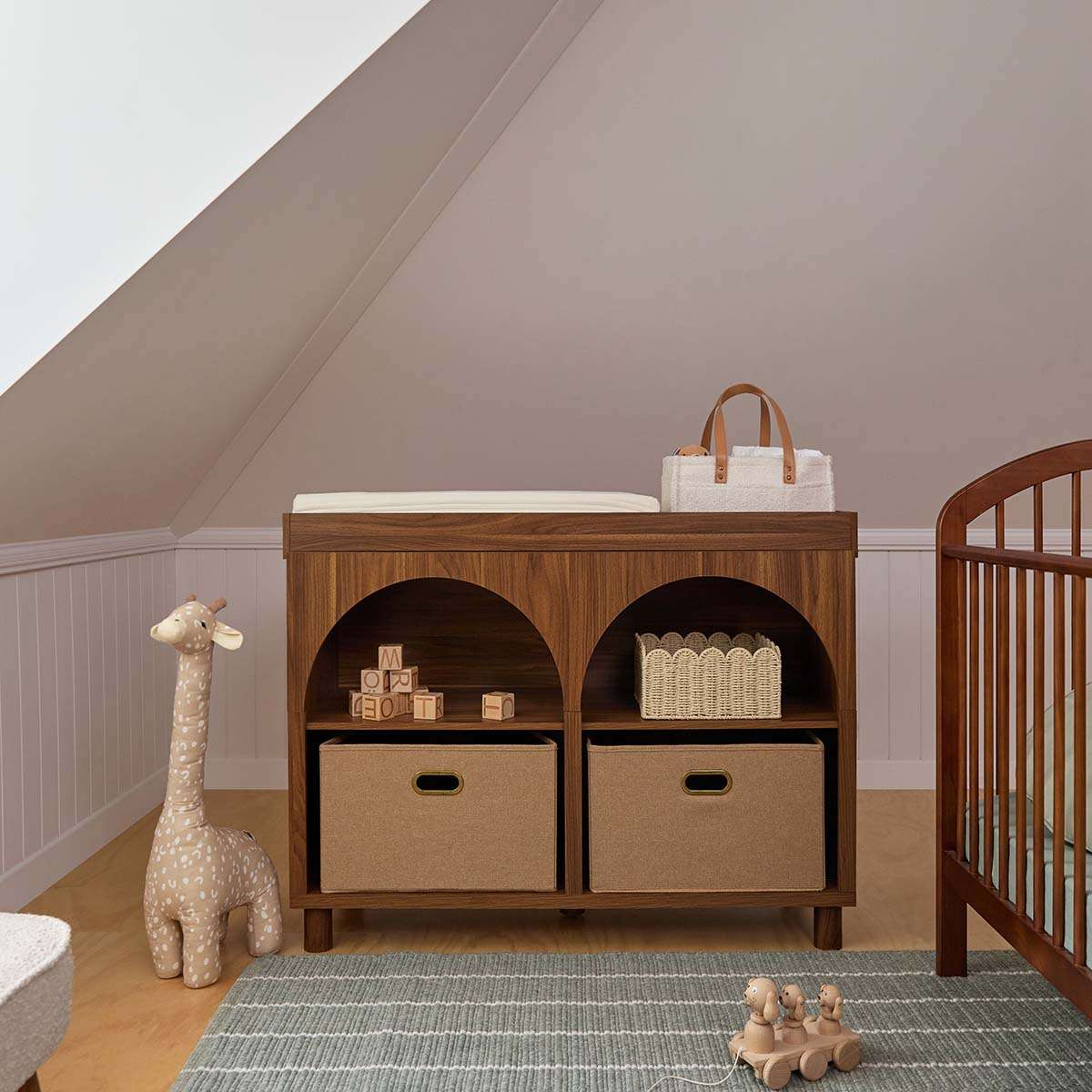 The Archie Change Table transforms from a change table to a storage unit, offering long-term use. Its removable top makes it perfect for families seeking practical, adaptable furniture.