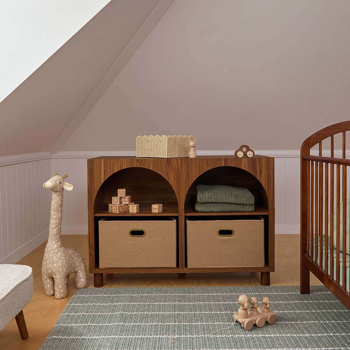 Two large storage boxes provide room for nappies, clothes, or toys. Keep your nursery tidy and essentials within reach, making daily routines simpler and more organised.